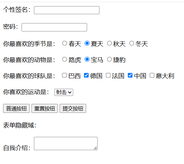 个性签名:<input type="text" name="signal" /> <br/><br/>
